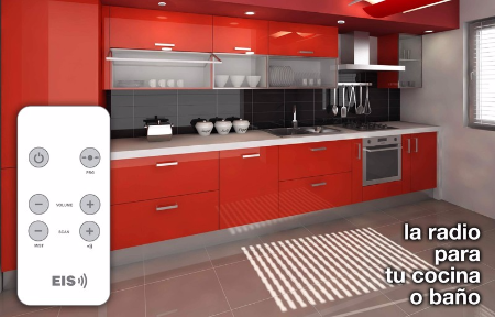 RADIO FM para cocinas, baños y cualquier otra estancia, controlada por mando a distancia. Instalación integrada en el techo o en un mueble